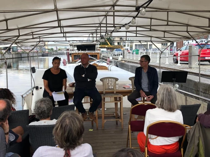 Une navigation pour favoriser la rencontre entre poète·sse·s francophones, néerlandophones et germanophones, à un rythme différent de celui, plus classique, d’une lecture en scène commune. Plusieurs jours pour se parler dans « la volupté de la lenteur ».